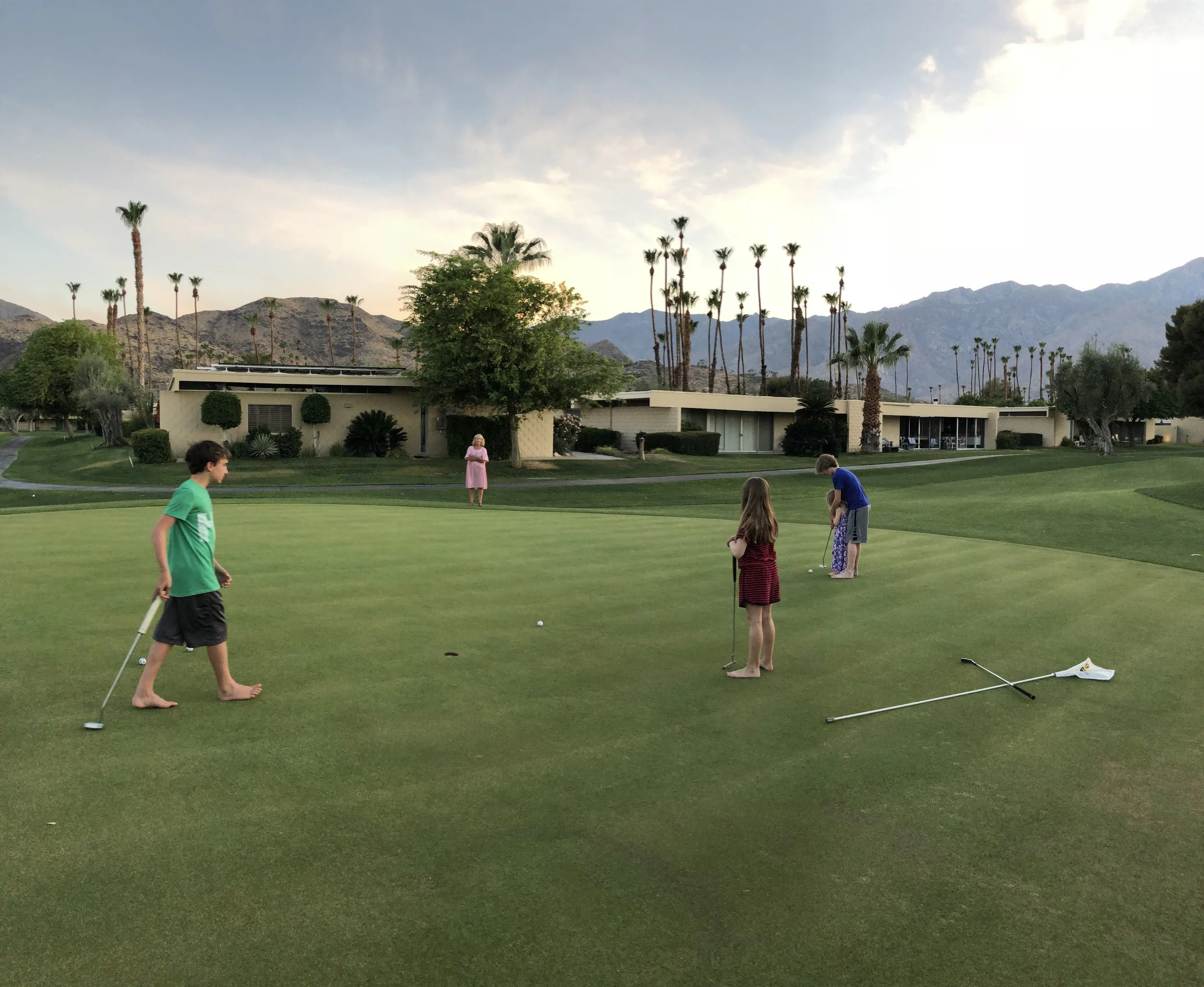 A post dinner golf outing turned into all four of my kids romping down the fairway. Golf shots were hit and giggles were abundant. It was a perfect summer night in the desert. Shoes were optional, having fun was not.