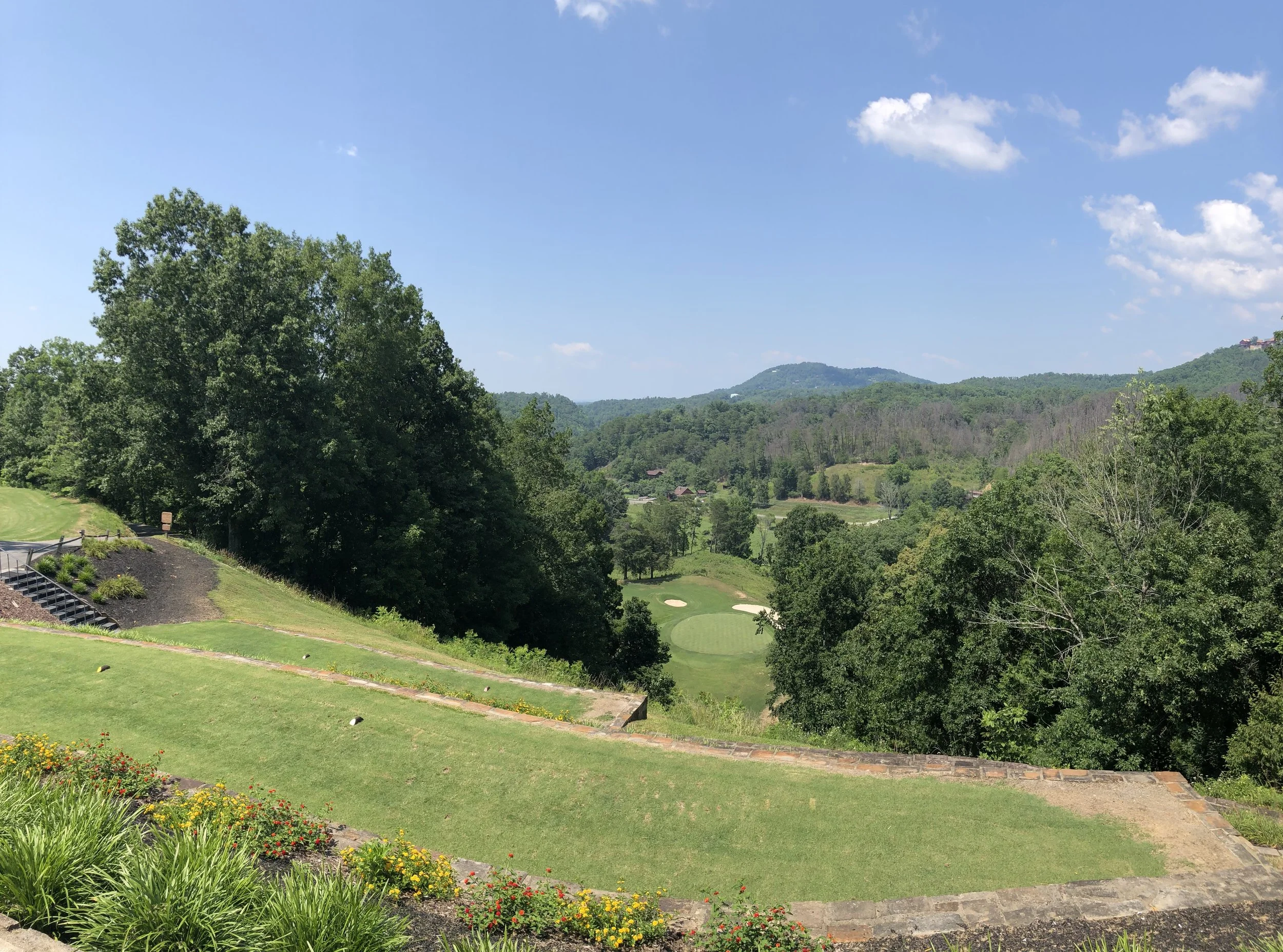 Every course has a signature hole and Gatlinburg Golf Club is no different. Like everything else in Gatlinburg/Pigeon Forge this hole is over the top. With an elevation change of over 150 feet this par 3 is unforgettable. Club selection is impossible and the cart ride from tee to green is over a quarter mile.