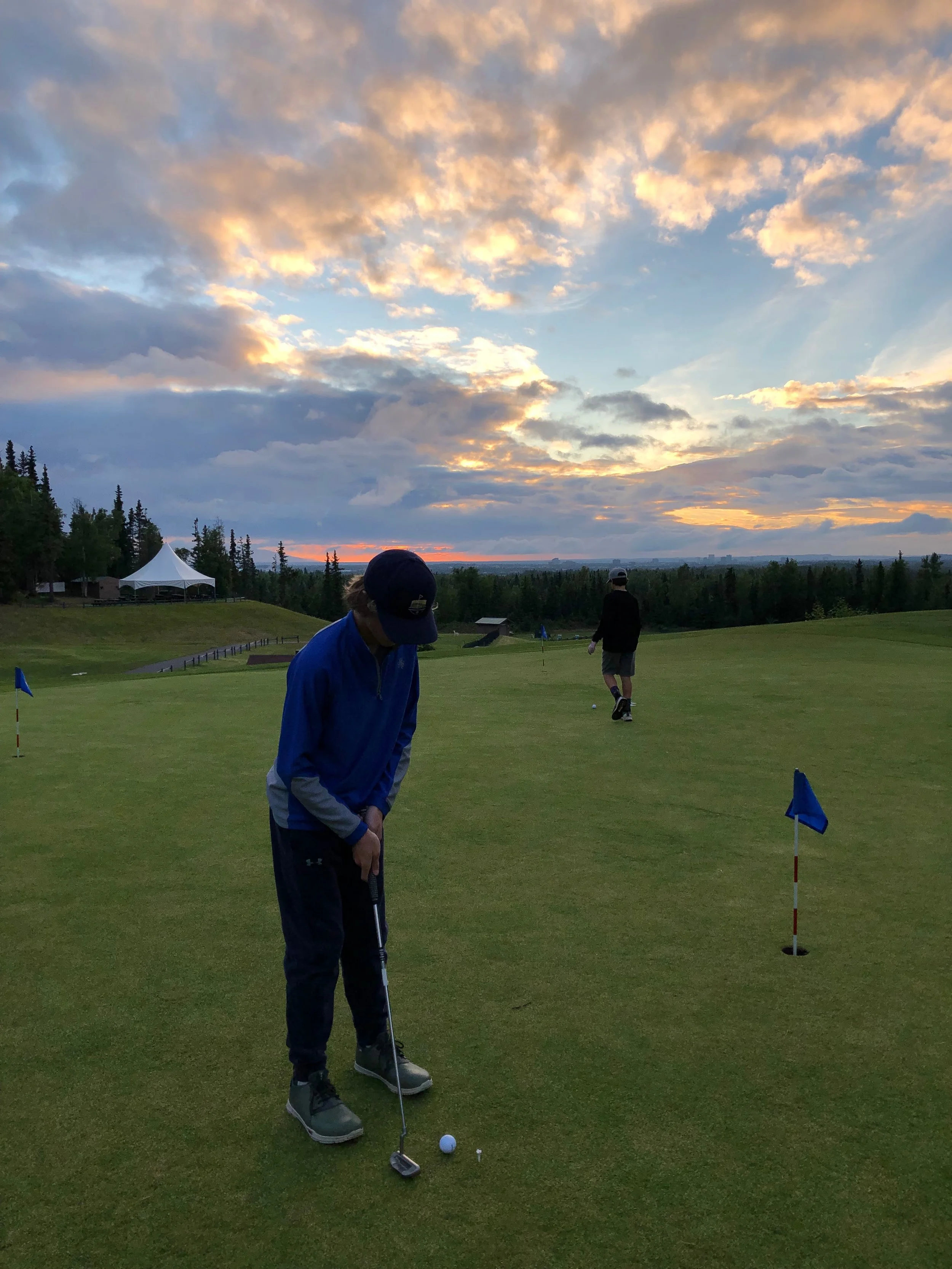 Staying up past your bedtime is always a treat and in Alaska it can involve getting in a round of golf. On June 22 the boys and I ventured out for an emergency 9. We teed off a little before 9:00pm and finished up around 11:00. The boys hadn’t had enough and wanted to stick around after the round and ended up rolling putts until 11:30. Summer Solstice at its best!